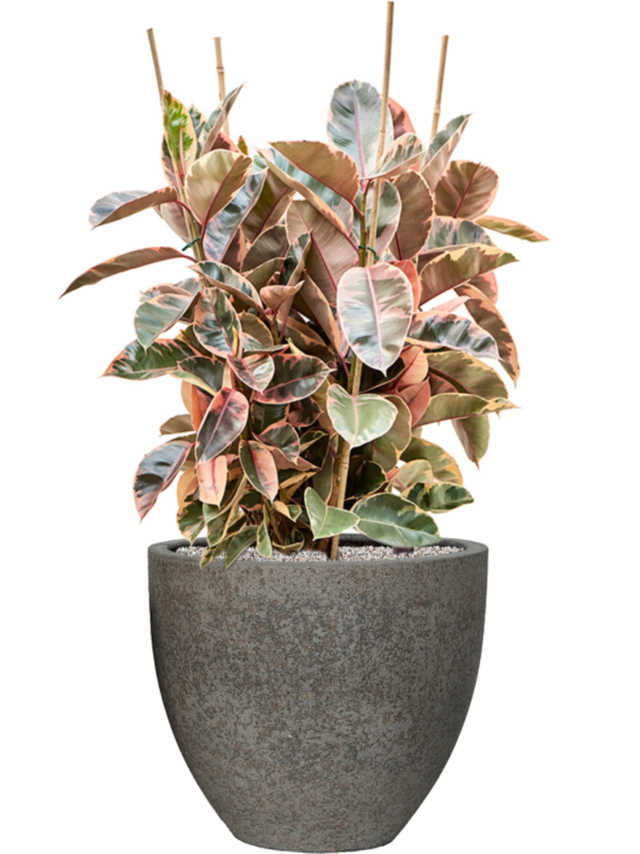 Ficus elastica 'Belize' in Cement & Stone Grond (Vulkastrat)