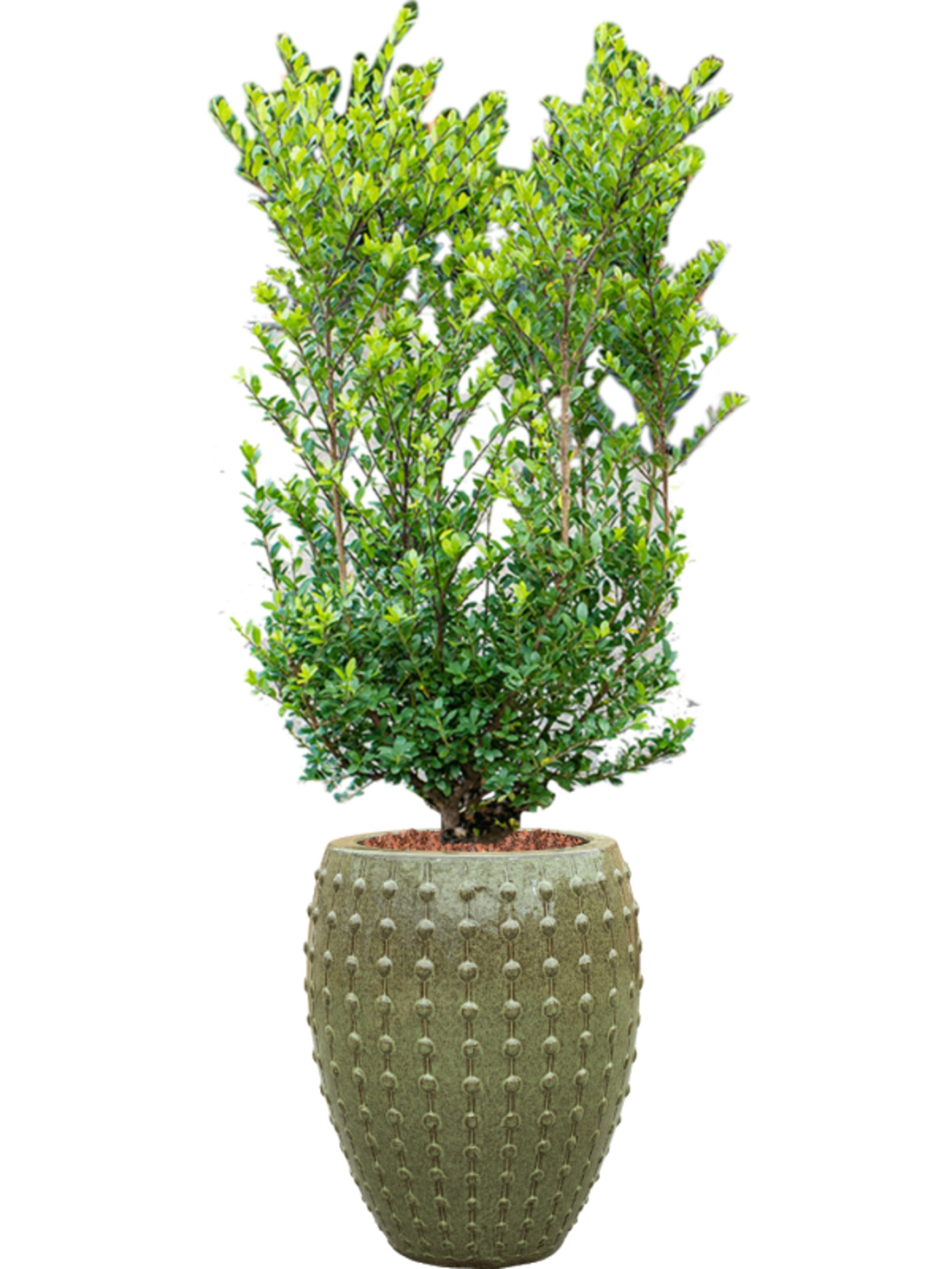 Ilex crenata 'Dark Green' in Laos Grond outdoor met Boomschors